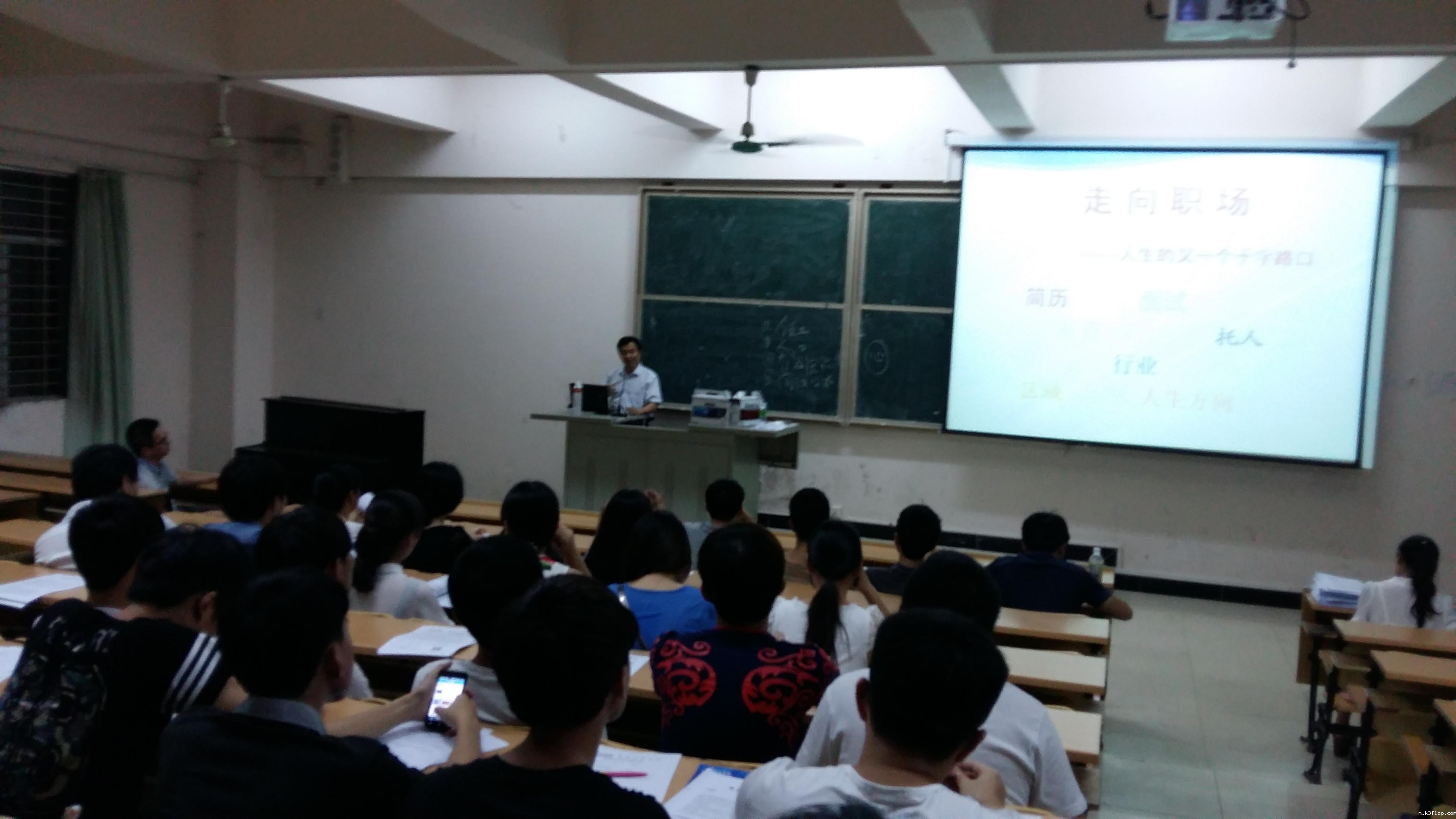 为了帮助学生拓宽就业渠道,更好地了解企业文化和用人单位的岗位需求,北大青鸟海南区金华庆校长莅临我校,于6月3日19:30在我校二教110教室举行招聘宣讲会。参会人员有工信学院冯义夫院长,教学办林娟老师,13级移动、计算机应用专业学生。